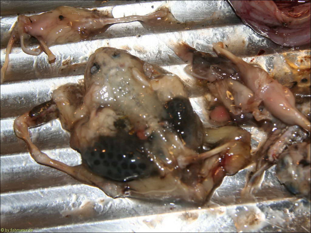 Beim Ausnehmen fand ich drei angedaute Grasfrösche in ihrem Magen!